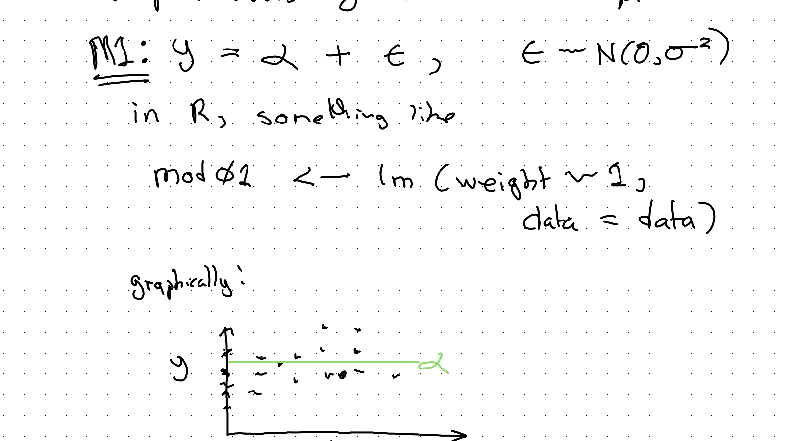 \[M1: \quad y = \alpha + \epsilon, \qquad \epsilon \sim N(0, \sigma^2)\]